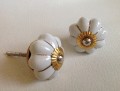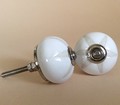 This one's a winner! An alternative design to the classic white porcelain cabinet knobs. A melon style design, soft creamy white color, silver accents and a glossy finish blend into a charming and attention demanding focal point for a DIY kitchen or bath update.